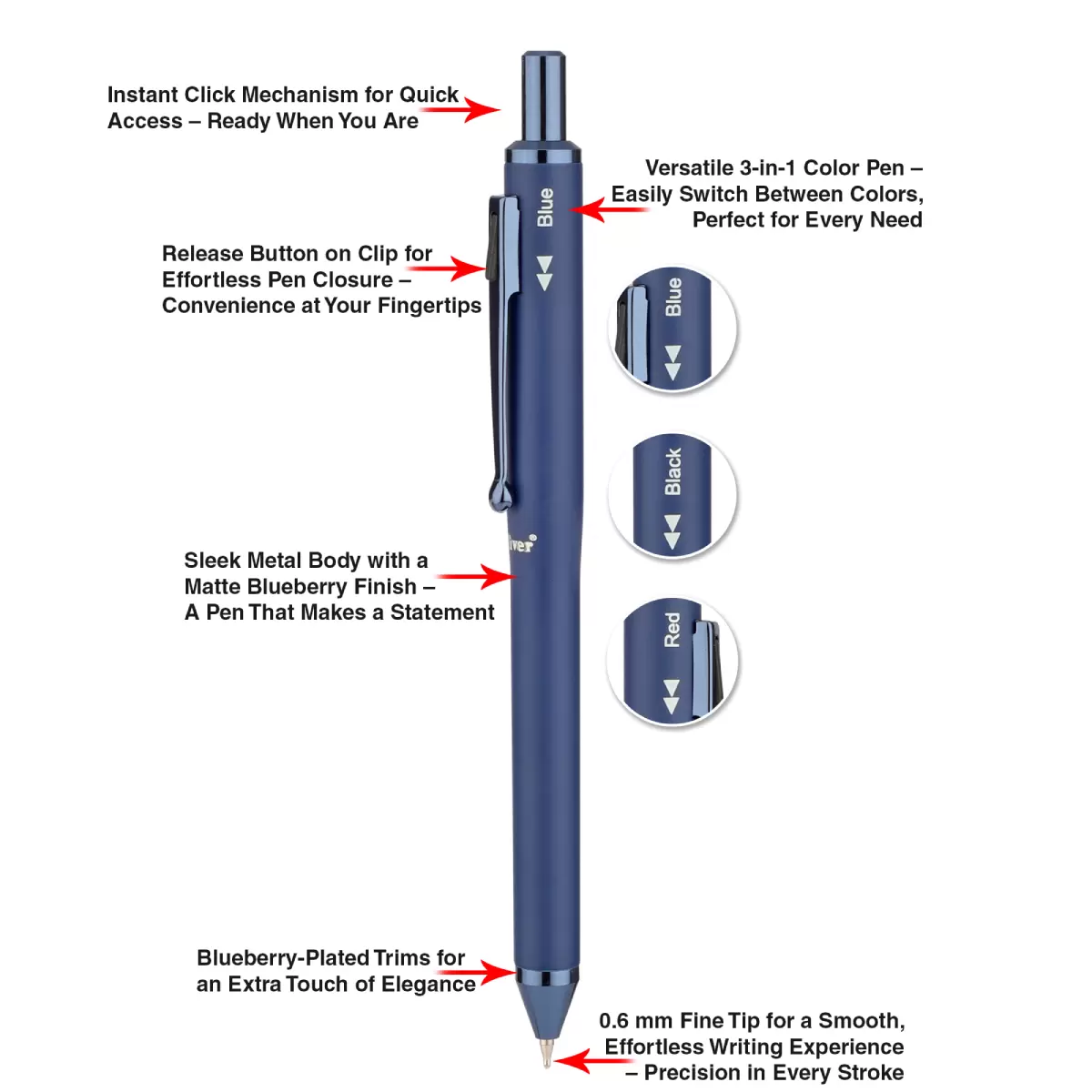 Oliver Rocket Blueberry 3 In 1 Ball Pen With T Box